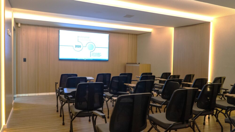 Com ambientes preparados para a realização de cursos, palestras, fóruns e workshops, o Centro também tem em sua estrutura a capacidade de produzir e receber eventos híbridos ou remotos.