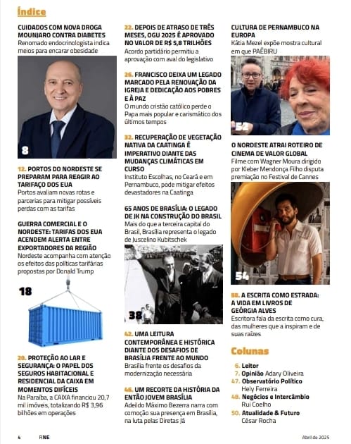Nova edição da Revista NORDESTE a de número 219, já circulando. Em destaque, os efeitos do tarifaço de Trump para a economia do NORDESTE em reportagem com os principais portos da região e entrevista exclusiva com o economista Jorge Jatobá;