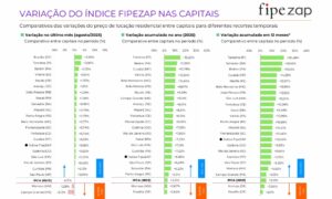 No contraponto, Manaus (AM) e Campo Grande (MS) tiveram baixa na porcentagem, segundo análise do Índice FipeZap.